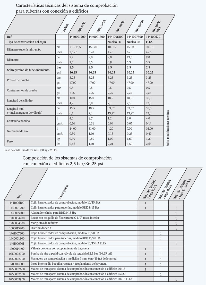 Obturadores para pruebas de estanqueidad en tuberías con conexión a edificios